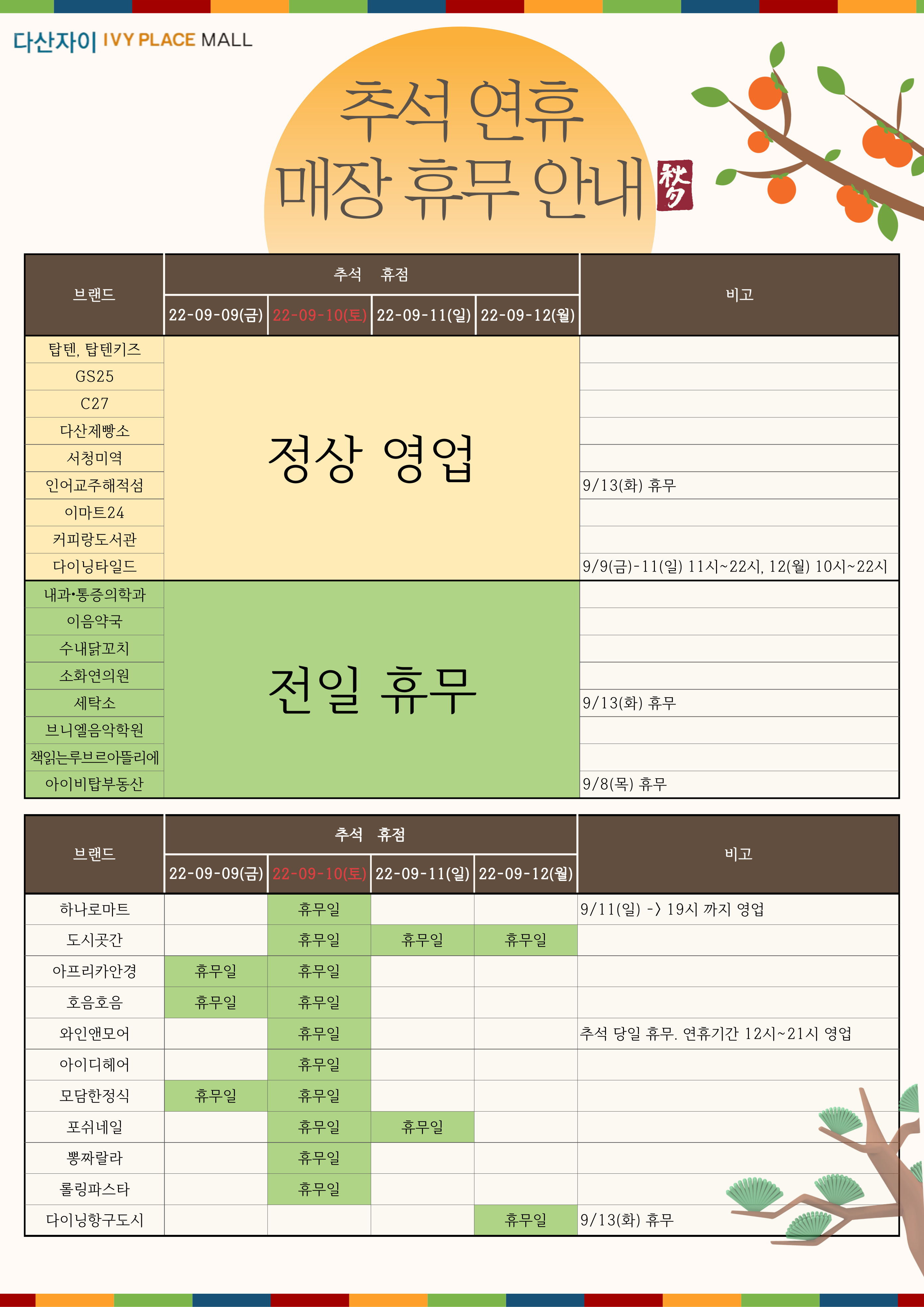제목 추석 휴무 안내(9/9~9/12)